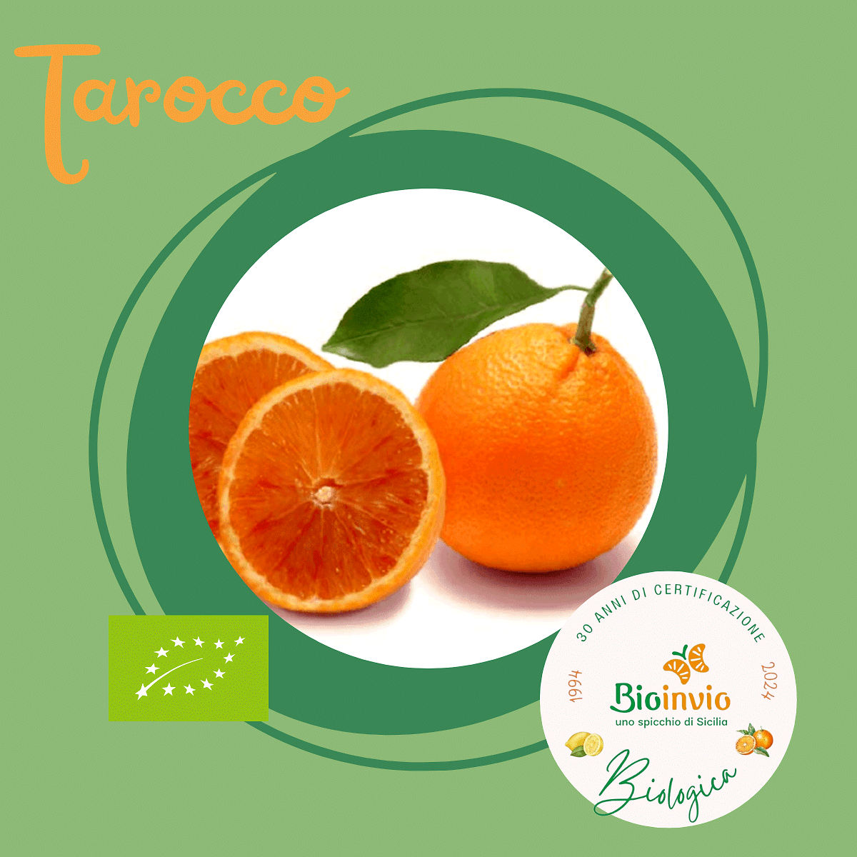 La polpa delle arance biologiche Tarocco è rossa e particolarmente succosa. Le arance biologiche Tarocco sono prive di semi, dal sapore dolce e dall’aroma delicato. Queste arance di Sicilia hanno una resa di succo elevata che consente di ottenere eccezionali spremute. Le arance biologiche Tarocco sono ottime da mensa poiché l’involucro dello spicchio è sottile. La particolare colorazione rossa di questo frutto dipende dalla presenza di pigmenti antocianici antiossidanti. Le arance biologiche Tarocco hanno un elevatissimo contenuto di vitamina C.